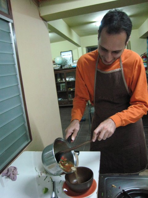 preparing tom kha gai